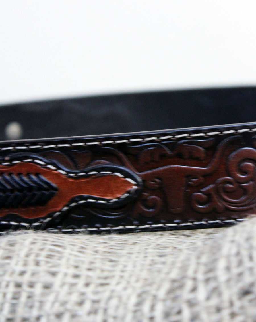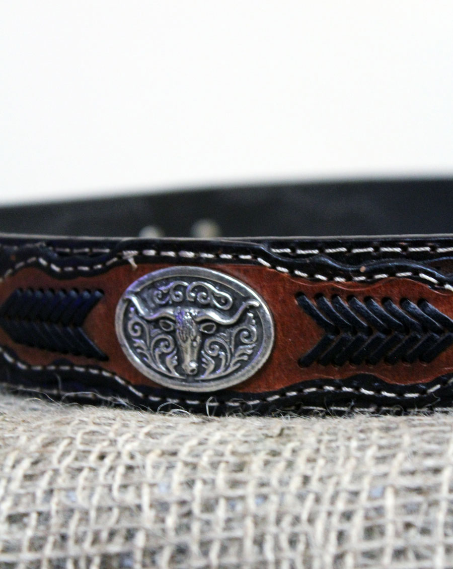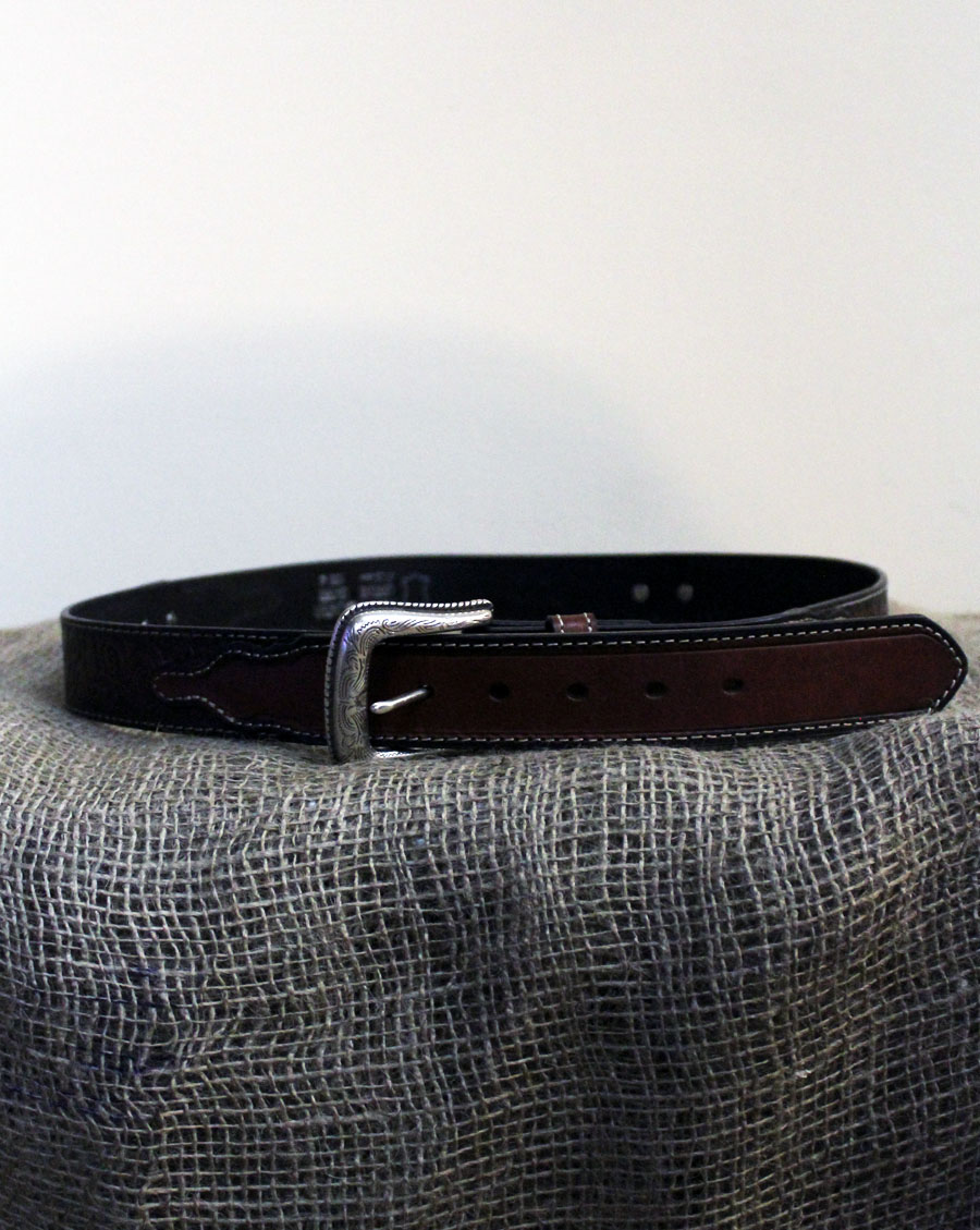 Brown leather belt with longhorn